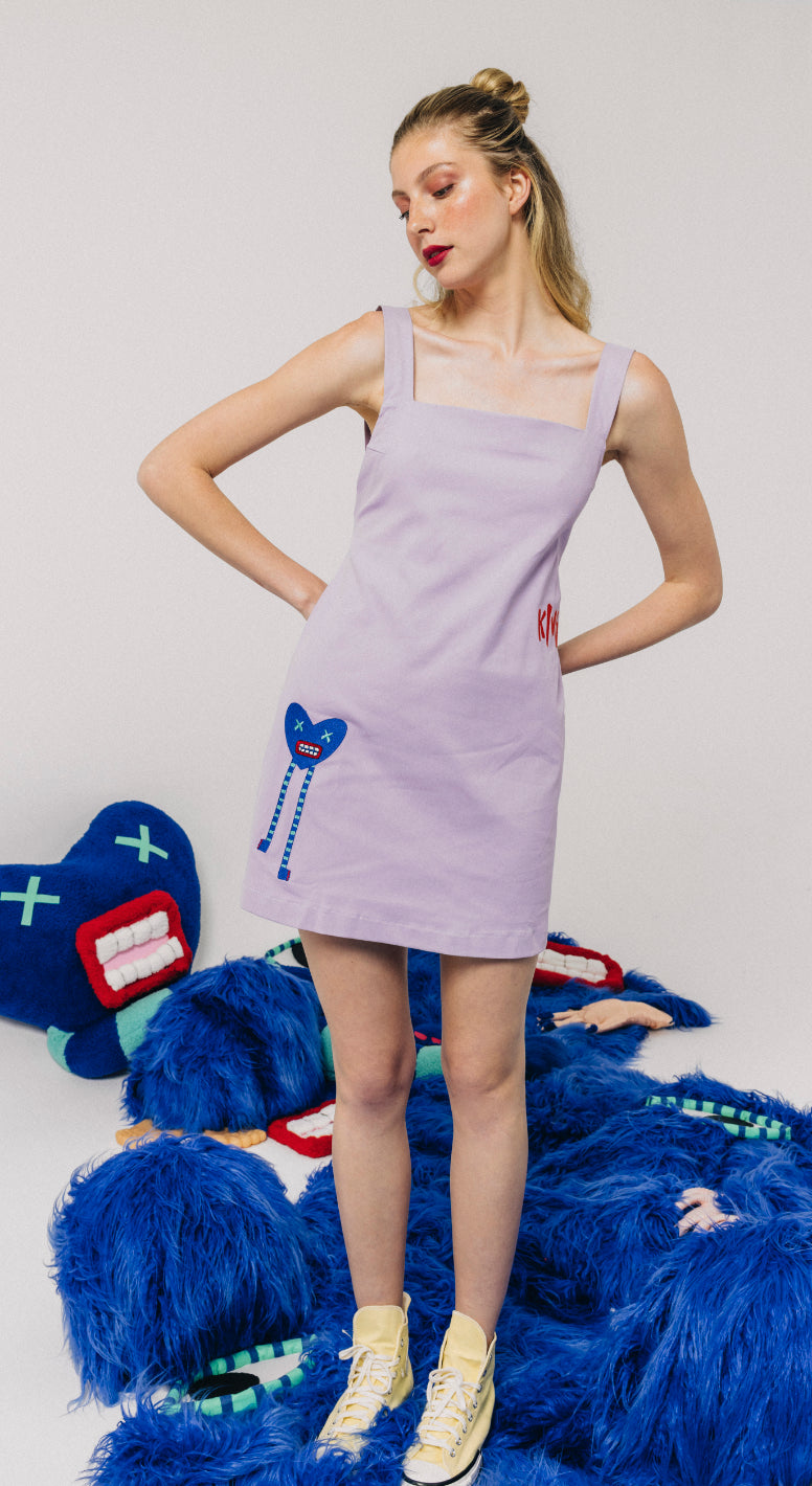 Illustrated Embroidered Overall Dress